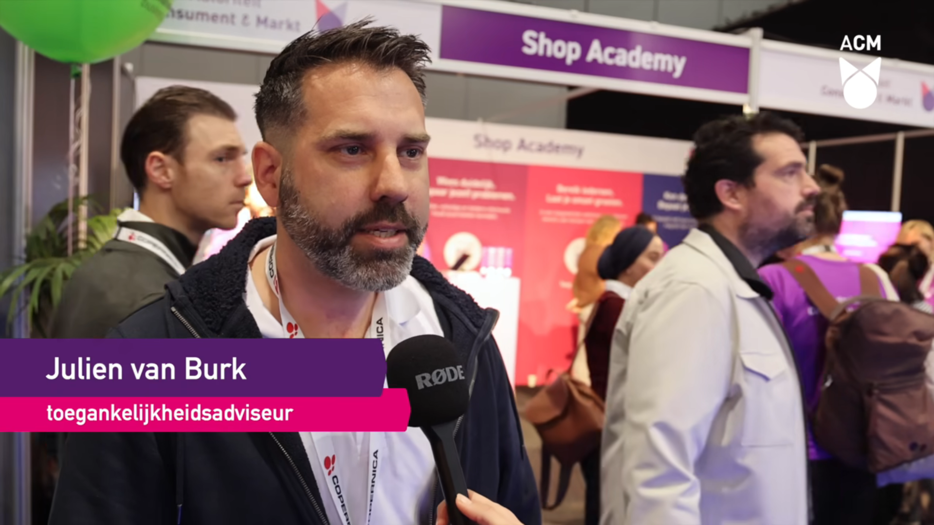 De ACM Shop Academy op de Webwinkel Vakdagen werd goed bezocht. Julien liep de beursvloer op, praatte met webshop specialisten en nam deel aan round tables om webwinkeleigenaren te informeren over de voordelen van een toegankelijke webshop — van meer omzet en hogere klanttevredenheid tot het voorkomen van imagoschade en boetes van de ACM.